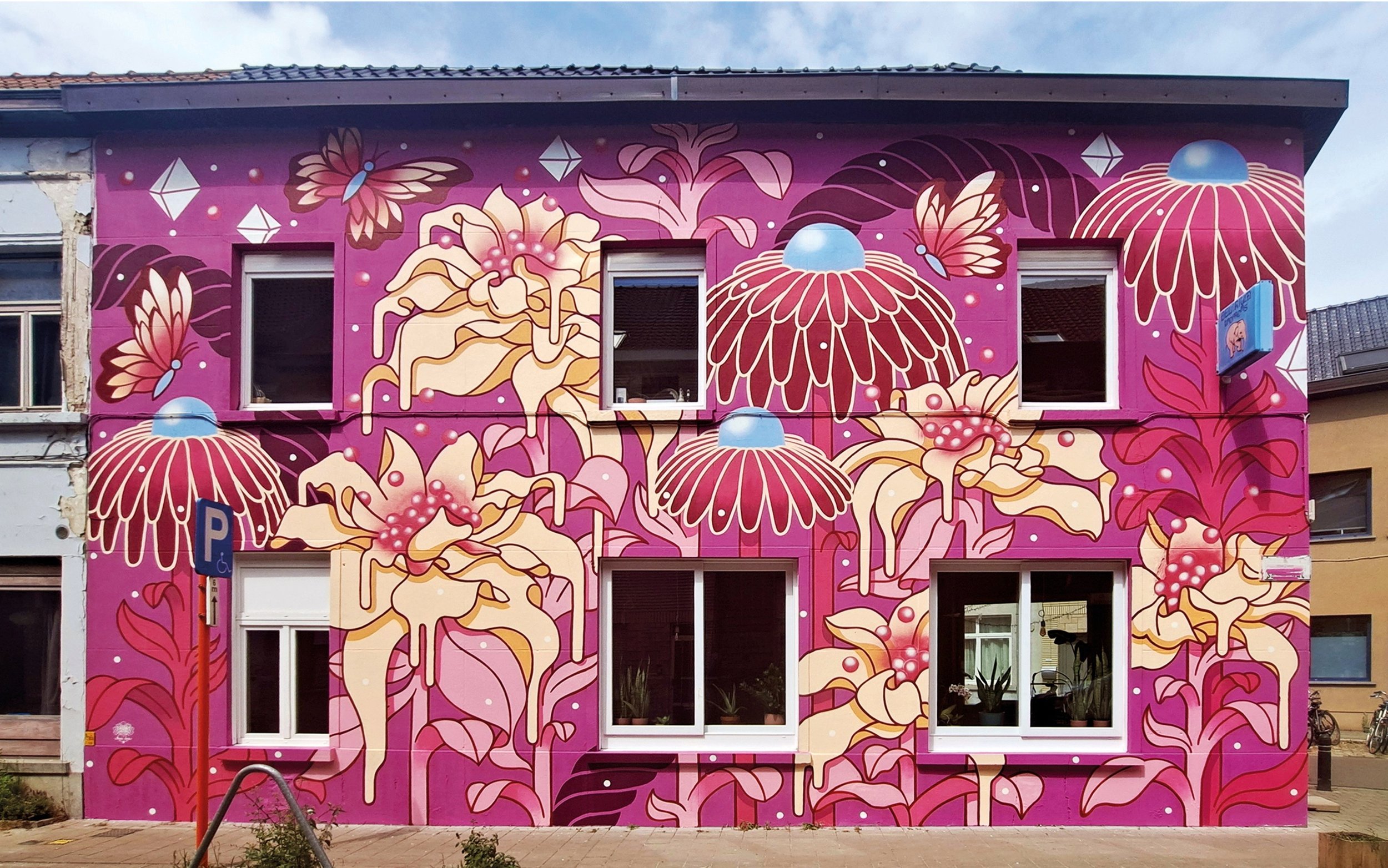 I create murals, illustrations, and paintings inspired by botanical forms, natural systems, and the energy of living worlds. My work is defined by vivid color palettes, flowing compositions, and a strong illustrative identity.